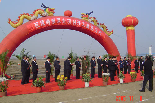 新聞中心 2005年11月9日,荏原博泵有限公司開工奠基儀式在淄博高新技術(shù)開發(fā)區(qū)隆重舉行。這標(biāo)志著荏原博泵泵業(yè)有限公司的建設(shè)工作已經(jīng)全面啟動(dòng),預(yù)示著荏原博泵泵業(yè)有限公司將穩(wěn)健地邁上蓬勃發(fā)展的道路。