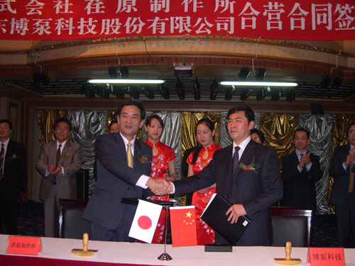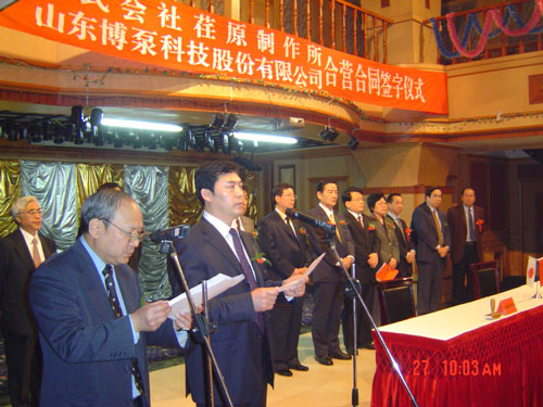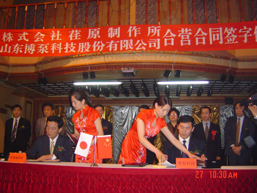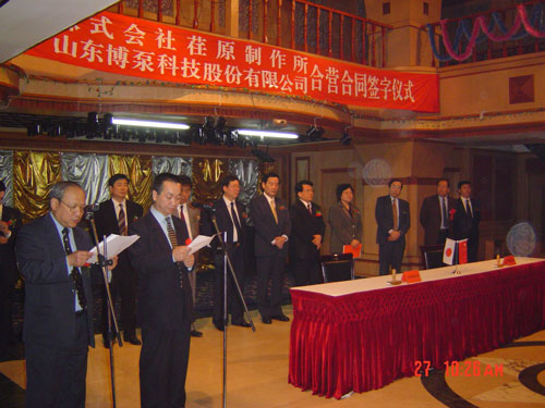 新聞中心 2005年4月27日,在博山萬(wàn)杰國(guó)際大酒店山東博泵科技股份有限公司與日本株式會(huì)社荏原制作所正式簽署了注冊(cè)資本1100萬(wàn)美元的合營(yíng)公司――荏原博泵有限責(zé)任公司。該公司的建立將通過(guò)引進(jìn)世界最大的泵企業(yè)――日本株式會(huì)社荏原制作所的先進(jìn)技術(shù),加快大型泵、高壓泵國(guó)產(chǎn)化進(jìn)程,建成具有國(guó)際競(jìng)爭(zhēng)力的一流企業(yè)。為中國(guó)水電、核電及超臨界火電項(xiàng)目,為南水北調(diào)等大型水力工程提供高質(zhì)量、高技術(shù)含量的一流泵產(chǎn)品,提升中國(guó)機(jī)械工業(yè)技術(shù)、質(zhì)量水平,促進(jìn)產(chǎn)品更新?lián)Q代,為中國(guó)電力、冶金、水力事業(yè)的發(fā)展乃至中國(guó)國(guó)民經(jīng)濟(jì)的發(fā)展做出應(yīng)有的貢獻(xiàn)。