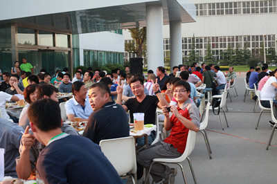 17:30分, “第四屆員工納涼晚會”正式開始。首先是員工聚餐。近400名員工,伴著歡快的樂曲聲,推杯換盞,大快朵頤。公司總經(jīng)理志賀進(jìn)、常務(wù)副總經(jīng)理王正軍等公司領(lǐng)導(dǎo)走入員工中,與員工們親切交談,敬酒祝愿,整個會場洋溢著一張張歡樂的笑臉。