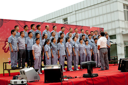 舞蹈《開(kāi)門(mén)紅》寄托著荏原博泵員工對(duì)公司發(fā)展前景的美好期盼,展示了公司女職工的風(fēng)采。20多名復(fù)員軍人用一首《咱當(dāng)兵的人》抒發(fā)了他們保家衛(wèi)國(guó)、貢獻(xiàn)企業(yè)的豪情與壯志;研發(fā)部、技術(shù)部員工帶來(lái)的歌曲《跳起來(lái)》,展示了年輕人的青春與活力;質(zhì)量保證部員工在部長(zhǎng)岳東海帶領(lǐng)下,演唱了歌曲《相親相愛(ài)一家人》,演繹著荏原博泵大家庭的親情、友情。友情樂(lè)隊(duì)帶來(lái)的動(dòng)感十足的歌曲,更是將晚會(huì)的氣氛烘托到高潮。