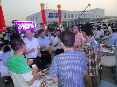 17:30,志賀進(jìn)總經(jīng)理端著酒杯,走到舞臺(tái)前,首先感謝廣大員工的辛勤努力,使公司取得很好的業(yè)績,隨著一聲“干杯”,荏原博泵第五屆納涼晚會(huì)拉開了序幕。公司380多名員工,分部門有序而坐,大家推杯換盞,興高采烈。公司領(lǐng)導(dǎo)挨桌給員工們敬酒,大家沒有了上下級(jí)的拘謹(jǐn),一派歡樂祥和的景象。